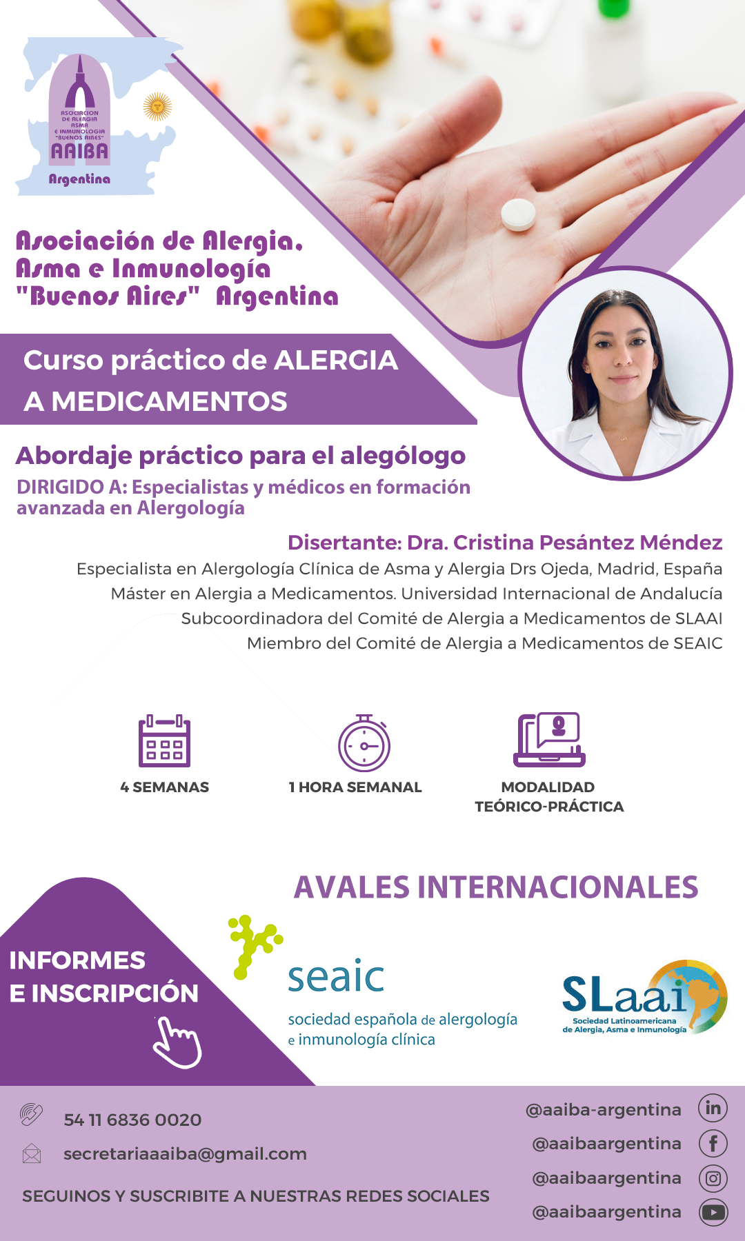Lo invitamos a participar en el Curso práctico de ALERGIA A MEDICAMENTOS, con AVALES INTERNACIONALES